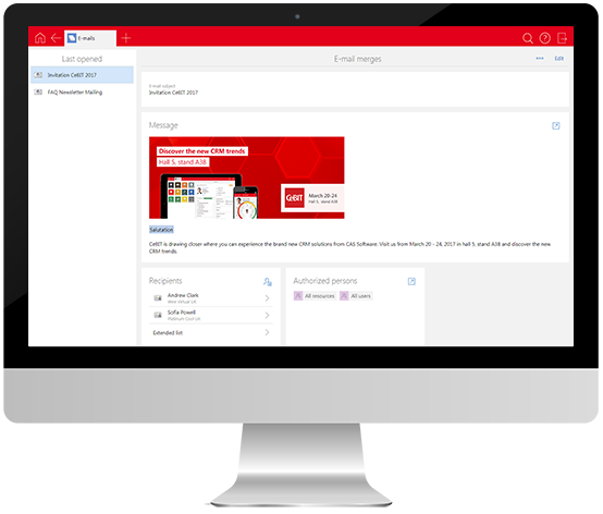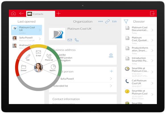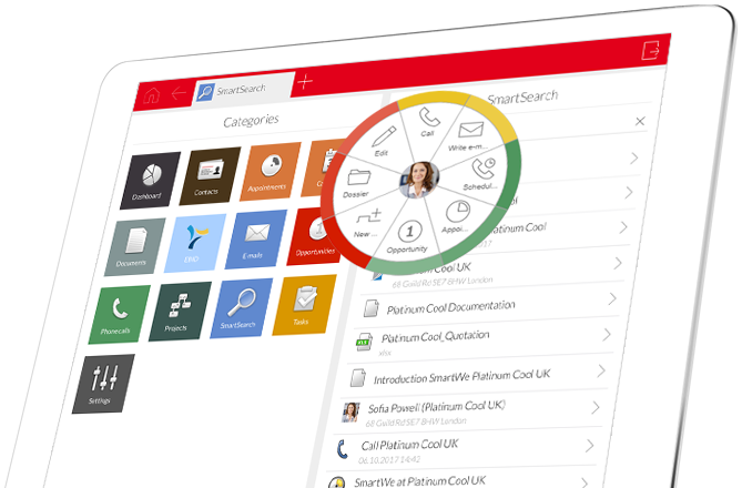 Lasă asistenții SmartWe să te ajute. Asistentul de adrese are grijă rapid de adrese. Asistentul de corespondențăface ca generarea e-mailurilor să devină o joacă de copii. Asistentul de relații vă atrage atenția asupra oportunităților și a riscurilor. Asistentul inteligent CAS SmartSearch nu doar că gândește pentru tine, ci se gândește mai departe.